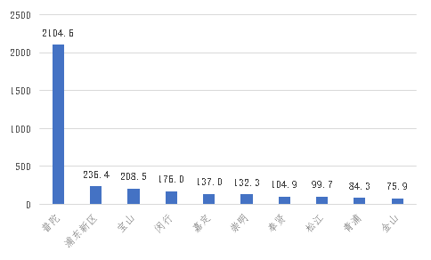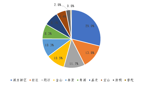 二、浦东新区产业用地出让最多,浦东、松江、闵行三区占全市比例过半