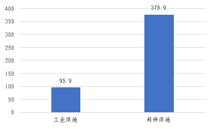上海产业用地分为工业用地和科研设计用地两类。近两年工业用地共出让12654.0亩,地价为95.9万元/亩;科研设计用地共出让4251.8亩,地价为375.9万元/亩,约是工业用地地价的4倍。