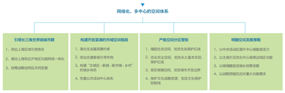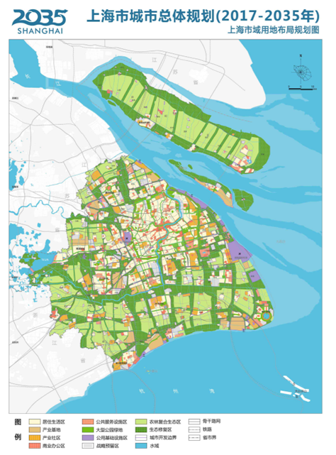 引用《上海市城市总体规划(2017-2035)》(以下简称“上海总体规划”)和《上海市国土空间近期规划(2021-2025年)》(以下简称“上海近期规划”)。上海总体规划是上海市未来近20年的总体导向性、约束性的要求,其核心也是对城市空间体系的划定,包括对生态空间、农业空间、城镇空间以及文保控制线,并且将相应的功能区落实到了规划图上。这里面需要指出的是,上海市级的总体规划并没有对土地的具体用途划定,而使用了“居民生活区”“商业办公区”等等这样的概念,对于产业使用了“产业基地”“产业社区”这样的概念。这也说明了,在省级层面的规划在土地用途管制的颗粒度上是比较粗的,给予了地市级、区县级、镇级政府充分的自由权,但是前提是要在政府的功能引导下编制下一级的规划。比如“居民生活区”,其中的土地性质肯定是以居住用地为主,但是也可以规划部分产业空间,如工业用地、科研设计用地或商办用地。
