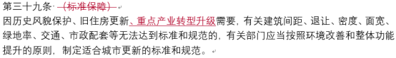 草案中已经着重强调产业内容,“产业”在草案稿中出现23次,其中第四十八条为专门的“产业转型升级引导”方面的内容。此次正式稿中在保留原先内容的基础上,又在多处添加了产业内容,比如城市更新的工作职责中加了“产业转型”的内容,专家委员会成员中加了“产业”方面的专家,在标准保障和用地保障中均加入了因“产业转型升级”给予相关保障等。
